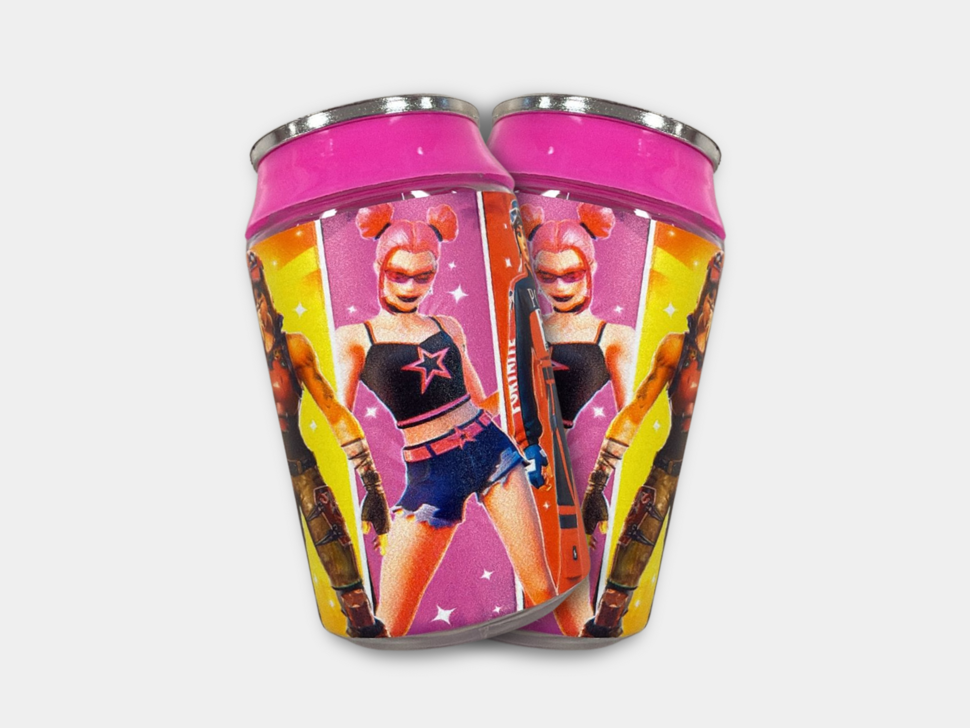 Loud, bold, and straight from the drop zone—this 3.5G mylar can hits with Fortnite-style artwork, hot pink gloss, and full cartoon chaos. It's giving loot crate meets street pack with major collectible vibes.